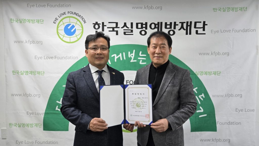 <사진설명: ㈜칼스엔비티 대표이사 김남형(좌), 한국실명예방재단 사무총장 김춘기(우), 25.12.8.>